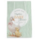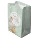 These charming baby shower Gift Bags feature a delicate vintage watercolor illustration of Mother Goose and Gosling, creating a warm and touching story of love and care. The delicate image is framed in an elegant oval border and set against a classic pastel green striped background, inspired by timeless nursery designs and fairy tales.