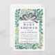 A fun array of greenery and flowers with faux gold foil surrounds this Baby Shower Gift. Other versions available, please check my store.