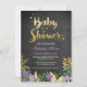 Chalk and purple Baby Shower invite with gold text. Suitable for a Moms baby Shower or Couples baby shower. Back polka dot print included.