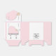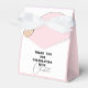 Creative baby shower thank you party favours gifts featuring pink balloons and sweet baby girl in piano stroller.