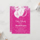 A hot pink background. Decorated with pink confetti and white balloons. White text. Personalise and add a name and party details.