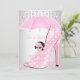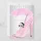 Cute Baby in High Heel Shoe, Shower Baby Girl and Diamond Lace White Polka dots Print with Umbrella and Bow. invitation, adorable new baby, baby girl Gorgeous