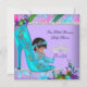 African American Princess Baby Shower Cute Girl Pink Teal Blue Purple Floral, Floral Lace, Cute Baby Girl in High Heel Shoe, Diamond Tiara Crown Little Princess "it's a girl" Party Invitation. Elegant Events for Women, Party Invites for all ages, just customise.