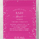 For a Baby Shower celebrating a baby girl. Hot pink background, white stars. Personalise and add the name of the mum to-be, party details, RSVP date. The name and the text: Baby Shower are written with a hand lettered style script