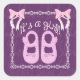 Cute Purple It's a girl sticker with pink baby shoes and two bows.
