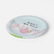 Cute paper plates for a baby girlshower or reveal party! It is decorated with a closeline with a baby hanging in blanket and baby clothes, pinned on closeline! There are theme items in my store under party supply and ready to serve bake goods under food in my store.
