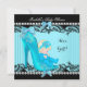 Blonde haired Baby Girl in High Heel Shoe, Cute Couples Baby Shower. Stiletto Baby Girl Teal Blue and Black Lace White Pearl and black Lace. Couples baby shower Pearl Lace Bow Ribbon invitation, new baby, girl See below.