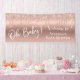 An elegant and glamourous welcome banner for your baby shower featuring rose gold faux glitter dripping from the top and "Oh Baby!" in a stylish white script against a rose gold background. You can easily personalise the mother-to-be's name.