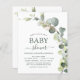 Eucalyptus Greenery Succulent Botanical Watercolor Spring Gender Neutral Baby Boy or Baby Girl Baby Shower Invitations on white background - includes beautiful and elegant script typography with modern botanical leaves and greenery for the special Mother to Be celebration.