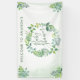 This baby shower welcome banner features a modern watercolor greenery foliage wreath. Personalise it with your text. Other matching baby shower items are also available. Please view the collection page or visit our store to view the full range.