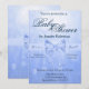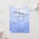 Baby shower invitation for a baby boy in streaming cloud blue colours with a ribbon and bow.