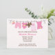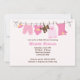This cute Baby Shower invitation features pink baby clothes and a teddy bear and baby blanket on a clothesline. This modern and elegant shower invitation is perfect for any mum to be. Some elements of this card © BabyStar Design