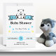 Teddy bear with banner on white background baby shower invitation for boy. The card is completely customisable, you can edit text, and colours on both text and design, even the background colour can be customised. It features simple, contemporary lettering and circle accents for a fun, casual get together rejoicing in that special moment to be. If you need help customising this card contact designer at ArtByLiz@gmx.com and it will be customised for you at no extra charge.