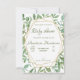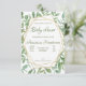 Invite family and friends to your baby shower with this customisable invitation. It feature watercolor illustration and pattern of gold frame and greenery.
