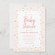 A whimsical baby shower invitation featuring rainbow sprinkles border on a blush pink background.