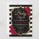 Elegant black white red design with faux glitter. Black and white stripes with red roses. Perfect for a stylish Baby Shower.