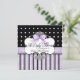 This Baby Shower Invitation features elegant French copperplate swirls, lavender and taupe dots in the background, a ruffled ribbon and a beautiful hand painted lavendar bow. All made from original artwork by Audrey Jeanne Roberts. The result is a beautifully contemporary Baby ensemble. On the reverse side there is the same dot pattern and a bracket revealing a place for your baby's photo. You can easily add your own picture or change the message. YOU MIGHT ALSO ENJOY: