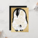 Baby Shower Invitations. Gold, Baby and Mummy Penguins invitation. Standard white envelopes included. Each side of this invitation can be personalised. Simply delete prewritten text and choose your favourite font colour, size, style, and then add your own wording. This is a 7" x 5", vertical, matte card.