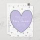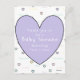 A Purple Heart with the words, "Please join us for a baby shower honouring..." on an affordable postcard style Baby Shower invitation is just adorable, with tiny pastel coloured hearts and sweet, loving words that bring to mind the special feelings behind the event. With matching accessories available, this design is the perfect selection for your baby shower. Call 203-302-0337 for assistance to assemble the rest of your baby shower matching package, i.e, party decor, cups, plates, napkins, gift wrap and more, sold separately. HAMbWG