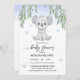 Baby shower invitation decorated with a cute koala illustration and eucolyptus leaves.