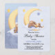Baby shower invitation decorated with an adorable bunny sleeping on the moon.