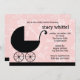 This cute Baby Shower invitation is just waiting to be customised with your details. This pink and black modern design features a stroller and a floral motif.