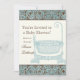 This Baby Shower Invitation features an elegant antique etching of a vintage baby bassinet matched with a contemporary, aged blue and brown damask pattern by Audrey Jeanne Roberts. The result is a classic and yet contemporary Baby ensemble. On the reverse side there is a coordinating swirl pattern and the same blue brown damask. YOU MIGHT ALSO ENJOY: