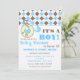 Baby Shower Invite -Diaper Pin Blue & Brown Argyle