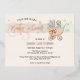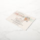 Here's a delightful baby shower invite on a postcard with real foil on the front. An adorable teddy bear sits in a vintage baby stroller with a big bow and stars floating around him. The words "Baby Shower" are in foil as is the name of the mummy-to-be. Text is easily updated with your particulars. The back holds a floral design with a vintage rocking horse on the bottom and holds pre-printed lines for you to write in names and addresses to send your postcards.