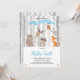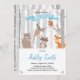 ♥ A cute and fun baby shower invite! All handdrawn! Woodland baby shower theme with blue for a boy shower.