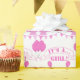 Make that baby shower extra special with this fun wrapping paper featuring pink elephants with balloons and “It’s A Girl” in pink text.