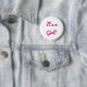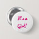Cute button for baby shower or gender reveal party with personalised text "its a girl" in hot pink colour and solid white background. You can change the background colour if you wish!