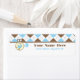 Baby shower address labels featuring a top border of blue and brown argyle with brown trim. Blue diaper pin attached to border and circle shape with blue baby carriage inside. Personalise the text with your name and address.