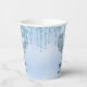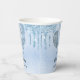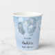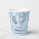 For a glamourous and feminine Baby Shower celebrating a baby boy. A light blue background. On the front and the back: Personalise and add a name and a date. Decorated with drips, paint dripping look and blue balloons.