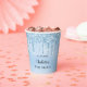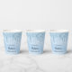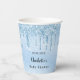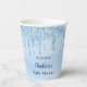 For a glamourous and feminine Baby Shower celebrating a baby boy. A light blue faux metallic looking background. On the front and the back: Personalise and add a name and a date. Decorated with faux glitter drips, paint dripping look.