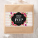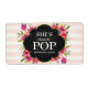 Make your own "She's About To Pop", boy baby shower champagne favours with this personalised label. These pretty DIY "she's ready to pop" champagne labels are unique and add a touch of class to your baby shower. They feature pretty water colour flowers with pale pink stripes. The labels are slightly larger to cover most mini wine labels and fits perfectly on standard sized mini champagne bottles.