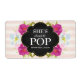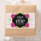 Make your own "She's About To Pop", girl baby shower champagne favours with this personalised label. These pretty DIY "she's ready to pop" champagne labels are unique and add a touch of class to your baby shower. They feature pretty water colour flowers with pale pink stripes and a chalkboard design element. The labels are slightly larger to cover most mini wine labels and fits perfectly on standard sized mini champagne bottles.