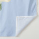 Elegant, fun, summer baby shower tapestry. Pastel blue background, celebrating a baby boy. With a faux gold geometric frame. Decorated with light yellow, cream coloured tropical florals flowers, hibiscus and happy bumble bees. Personalise and add a name and a date. With the text: Mum to Bee and Baby Shower written with a hand lettered style script. Can be used as wall decor for the baby shower or as a photo backdrop.