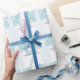 Baby Shower or birth grandson name aqua blue wrap Wrapping Paper