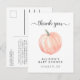 Thank your baby shower guests with this cute and minimal gender-neutral thank you postcard featuring a pastel orange watercolor of a pumpkin and "thank you" written in a stylish script with swashes. On the back, you can easily personalise your return address, thank you message and signature.