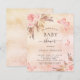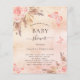 For a modern boho style baby shower. A rose gold, blush pink rustic faux metallic looking background. Decorated with rose gold and pink florals, roses, pampas grass and butterflies. Personalise and add a name and party details.