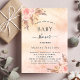 For a modern boho style baby shower. A rose gold, blush pink rustic faux metallic looking background. Decorated with rose gold and pink florals, roses, pampas grass. Personalize and add a name and party details.