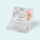 For a modern boho style baby shower. celebrating a baby girl. A faux silver looking background. Decorated with non-coloured roses, pampas grass and a teddy bear girl holding a pink balloon. Personalise and add a name and party details.