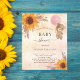 For a modern boho style baby shower. A rose gold, blush pink rustic faux metallic looking background. Decorated with sunflowers, pampas grass and a teddy bear girl holding a pink balloon. Personalise and add a name and party details.