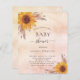 For a modern boho style baby shower. A rose gold, blush pink rustic faux metallic looking background. Decorated with sunflowers, pampas grass. Personalise and add a name and party details.