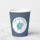 These baby shower paper cups feature a blue watercolor sea turtle in shades of blue. Use the template fields to add your custom text. A cute choice for an under the sea theme. Watercolor art and design by Victoria Grigaliunas. To see more baby shower ideas visit www.zazzle.com/dotellabelle