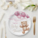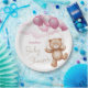 Baby Shower Paper Plate decorated with an adorable teddy bear riding balloons in the clouds.