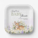Baby Shower Paper Plate featuring an adorable watercolor fawn nestled among flowers.