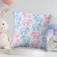 Sweet baby shower or baby birthday party design with pink and blue Indian elephants and a polka dot background.