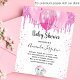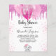 For a baby shower, celebrating a baby girl. A chic white background. Decorated with pink faux glitter drips, paint dripping look, balloons and a cute little baby elephant girl. Personalise and add the name of the mum to-be's name and party details. The name and the text: Baby Shower are written with a hand lettered style script